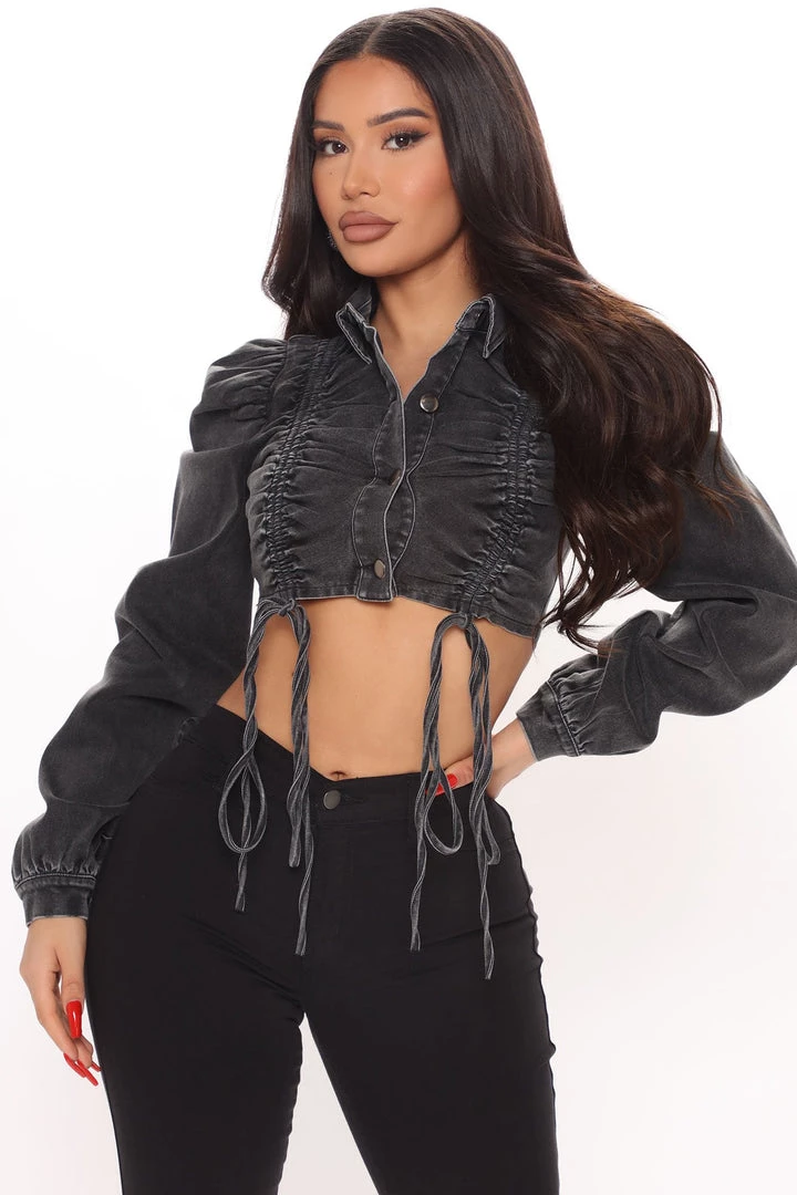 Be the first to review “Fashion Nob Bust A Move Ruched Denim Jacket – Black” Cancel reply