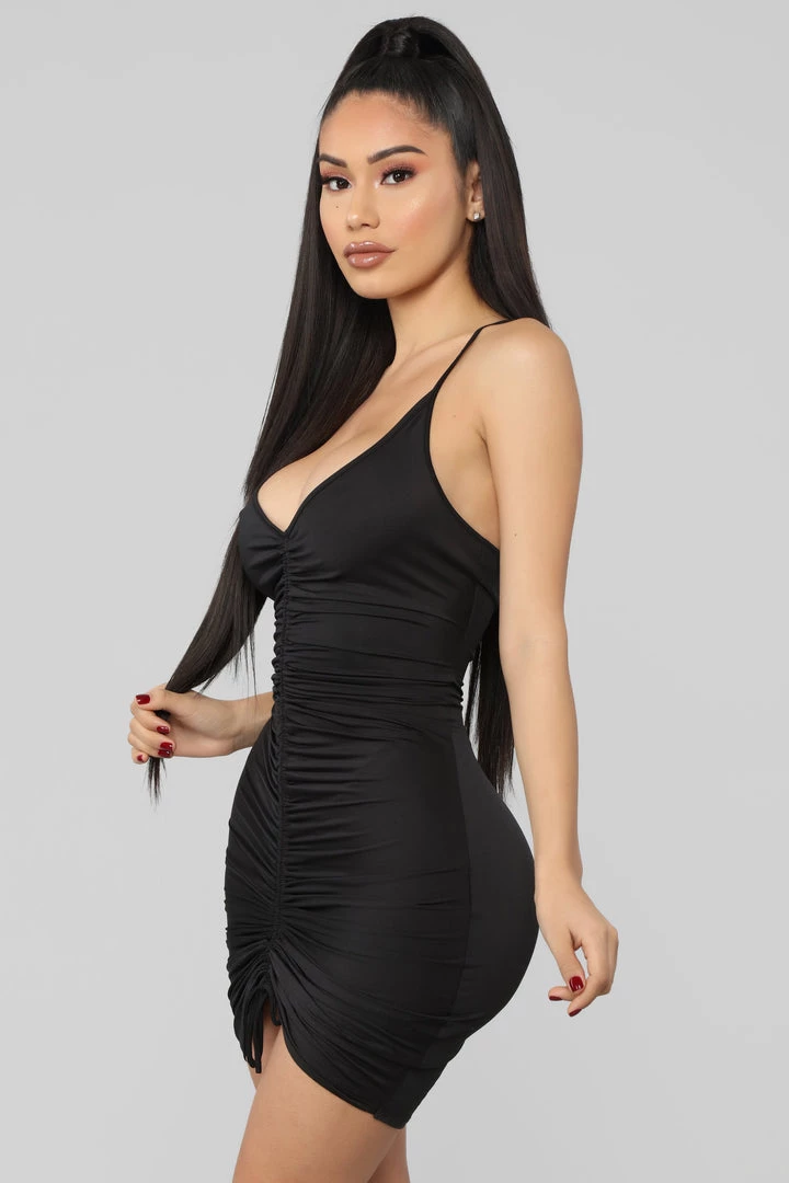 Ruched if you do. ruched if you don’t. Our Shanghai Ruched Dress is detailed with a center drawstring. showcasing a full-body ruching. Straps are adjustable for the perfect fit. and colors available are Burgundy. Grey. Hunter Green and Black.