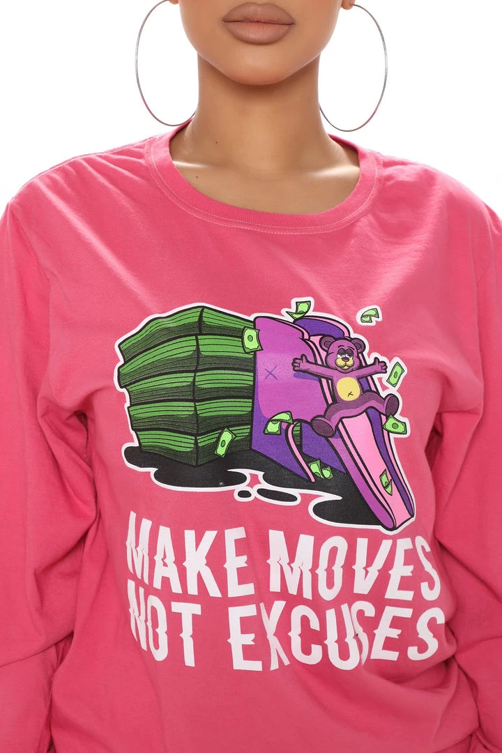 Be the first to review “Fashion Nova Teddies & Babydolls Make Moves Not Excuses Long Sleeve Top – Pink” Cancel reply