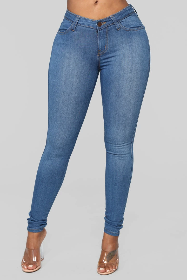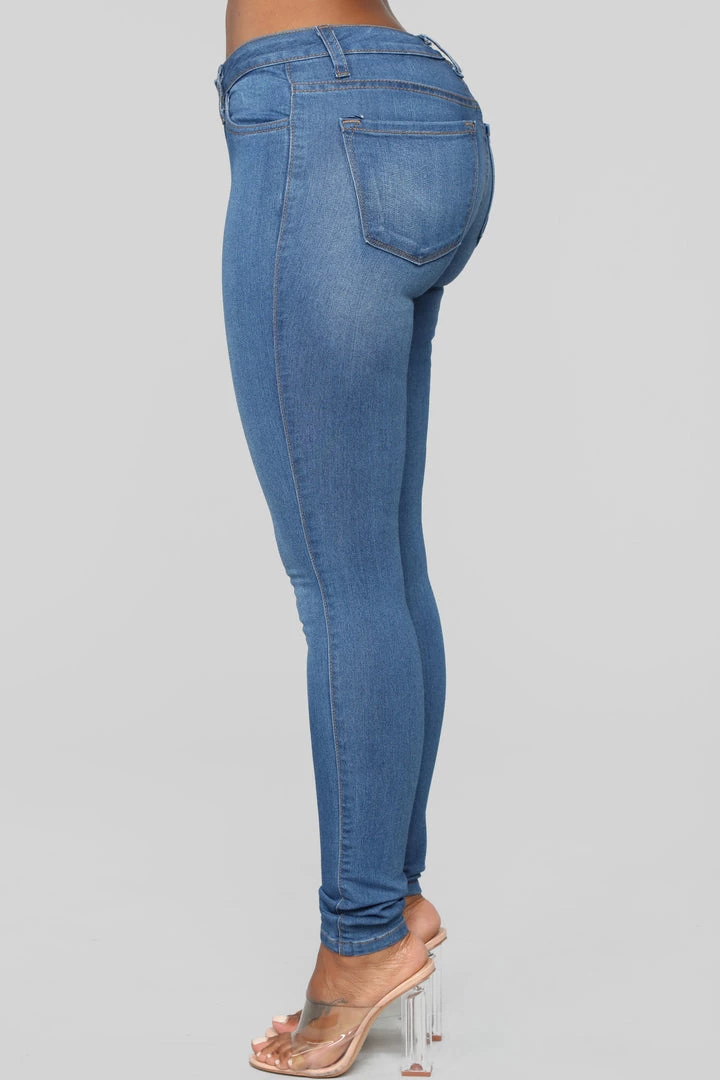 Mid-rise to the occasion! Transition seamlessly from day to night in our Medium Blue Classic Mid-Rise Skinny Jeans. Featuring a five-pocket design and mid-rise, skinny cut, this is a pair of denim you won’t know how you ever lived without.